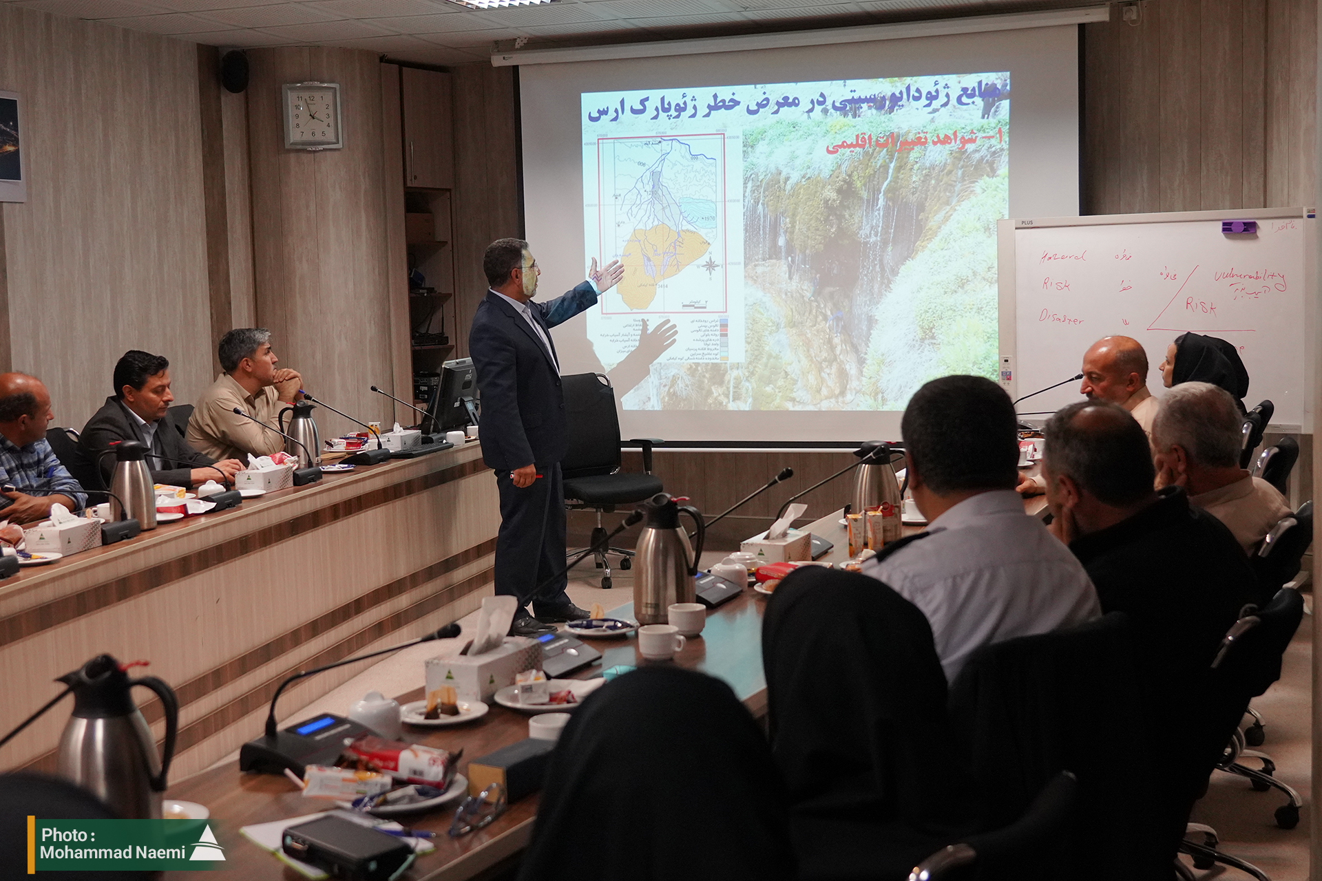 در این رویداد که به مناسبت روز ملی کاهش اثرات بلایای طبیعی برگزار شد، دکتر داود مختاری استاد برجسته دانشگاه تبریز و مدیر مرکز پژوهشی ژئوتوریسم به تشریح انواع بلایای طبیعی احتمالی در ژئوپارک ارس و رویکردهای مدیریتی در کاهش اثرات این بلایا و نیز برنامه حفاظت از منابع ژئودایورسیتی ژئوپارک ارس پرداخت.